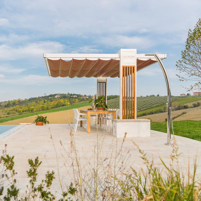 In echter italienischer Handwerkstradition entwirft und fertigt die Firma UNOSIDER seit 1998 Pavillons, Pergolen sowie Sonnen- und Wetterschutzsysteme in kompromissloser Qualität.